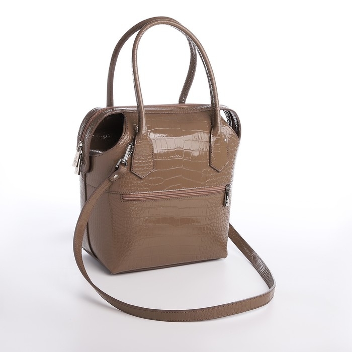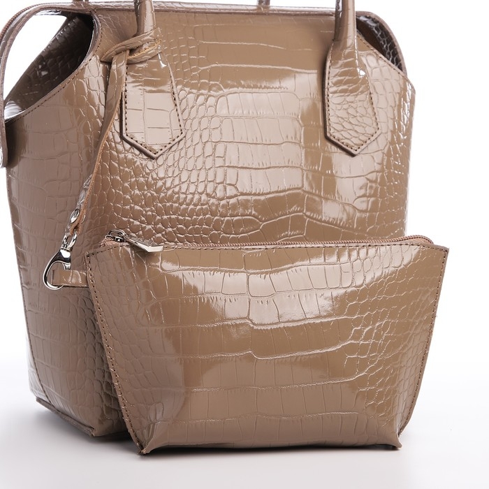 Сумка женская на молнии, с косметичкой, цвет капучино