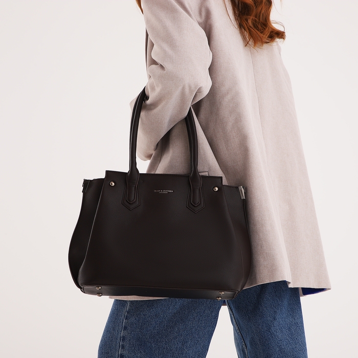 Сумка женская тоут, на молнии, цвет тёмно-коричневый
