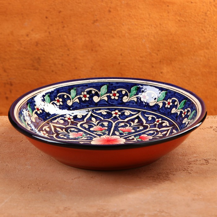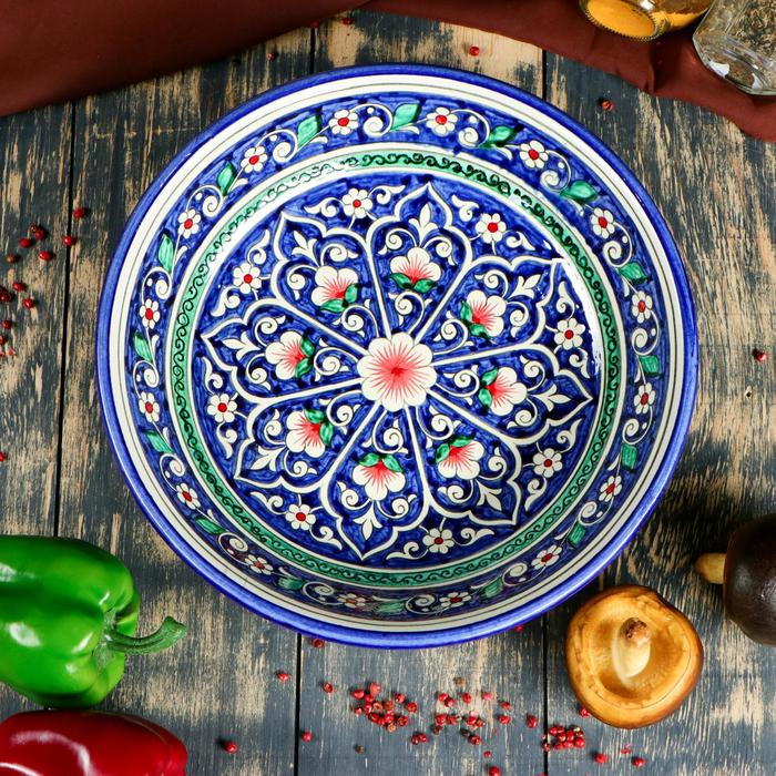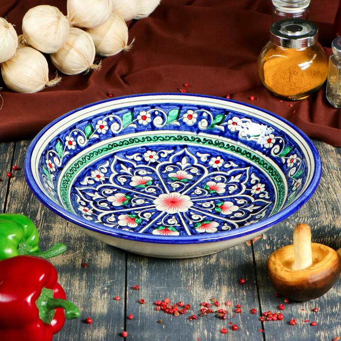 Супница Риштанская Керамика "Цветы", 28 см, синий