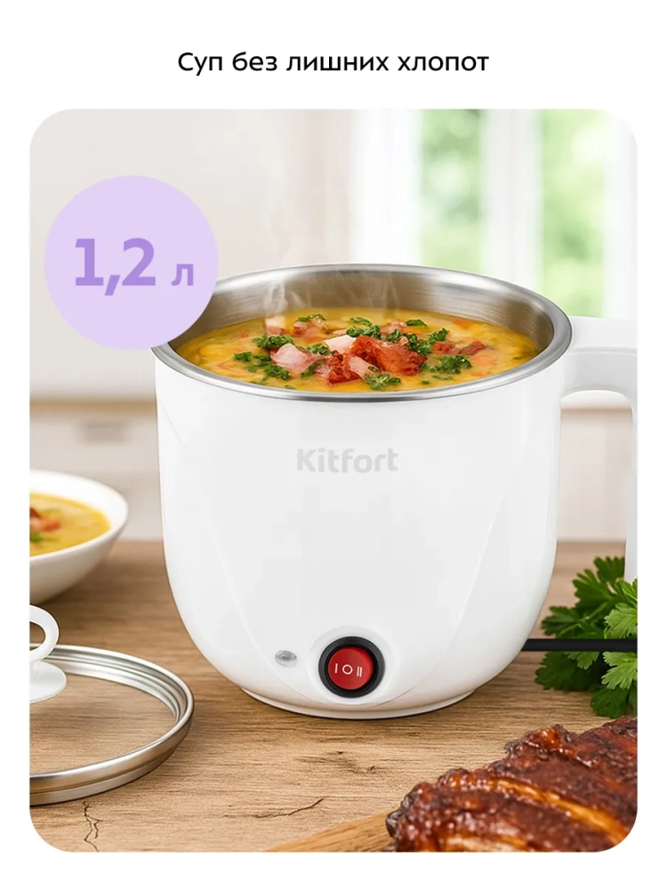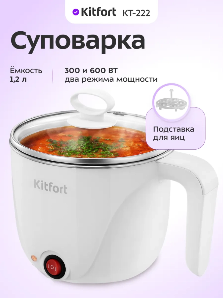Суповарка Kitfort КТ-222 — это простой в использовании кухонный прибор для приготовления супа. Диетологи отмечают, что сбалансированное питание обязательно должно включать супы в рационе, потому что суп — это сытно, полезно для желудка и всегда разнообразно.