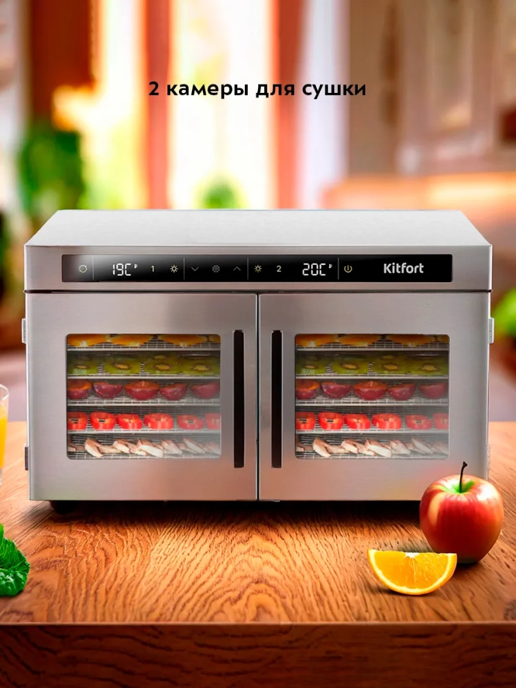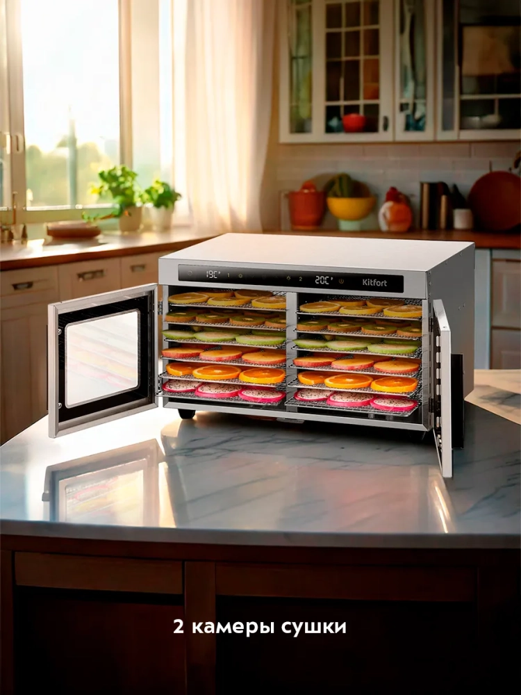 Электрическая сушилка Kitfort КТ-4935 предназначена для сушки овощей, фруктов, ягод, грибов, корнеплодов, трав и зелени, а также мяса и рыбы, хлеба.