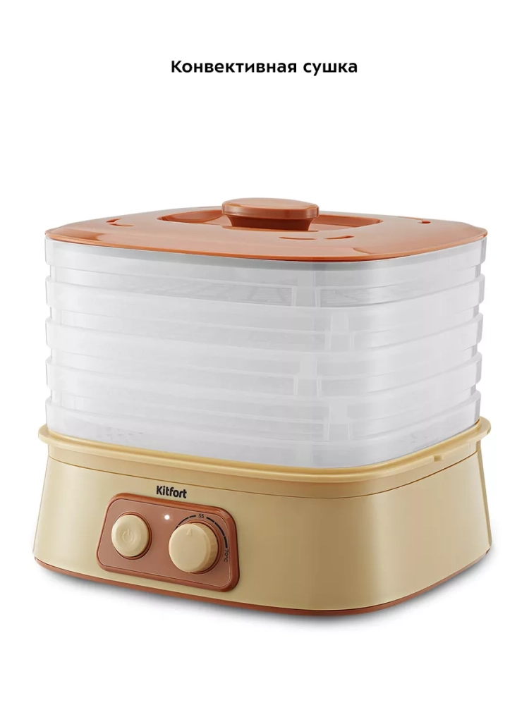 Электрическая сушилка Kitfort КТ-1990 предназначена для сушки овощей, фруктов, ягод, грибов, корнеплодов, трав и зелени, а также хлеба.