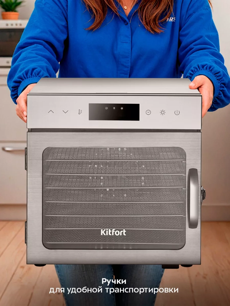 Электрическая сушилка Kitfort КТ-4922 предназначена для сушки овощей, фруктов, ягод, грибов, корнеплодов, трав и зелени, а также мяса и рыбы, хлеба.