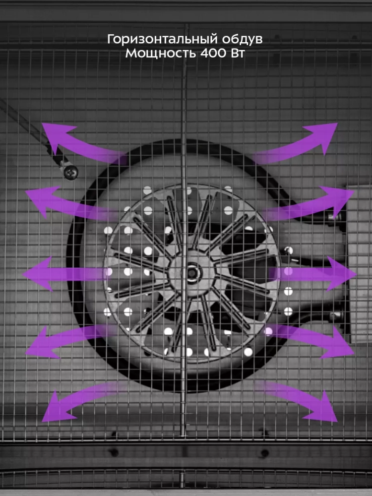 В сушилку установлен мощный нагревательный элемент и вентилятор, обеспечивающий равномерное распределение нагретого воздуха по всему объему камеры. Благодаря горизонтальному обдуву смешение запахов при одновременной сушке разных продуктов минимально.
