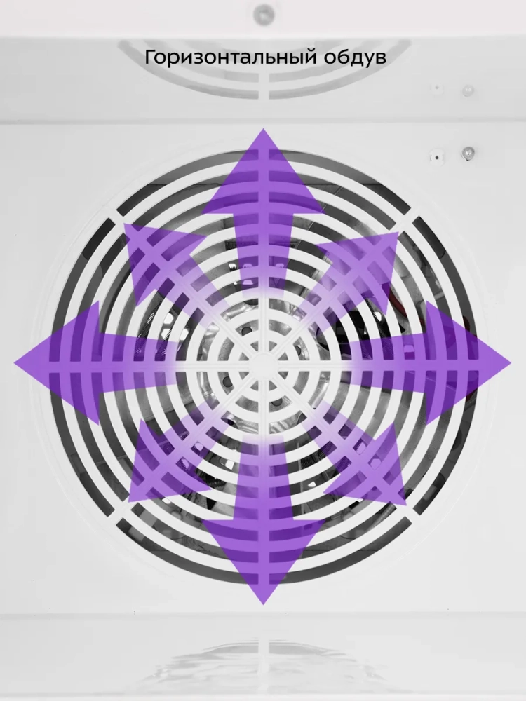 В сушилке установлен нагревательный элемент, а также вентилятор, обеспечивающий равномерное распределение нагретого воздуха по всему объему камеры. Благодаря горизонтальному обдуву смешение запахов при одновременной сушке разных продуктов минимально.
