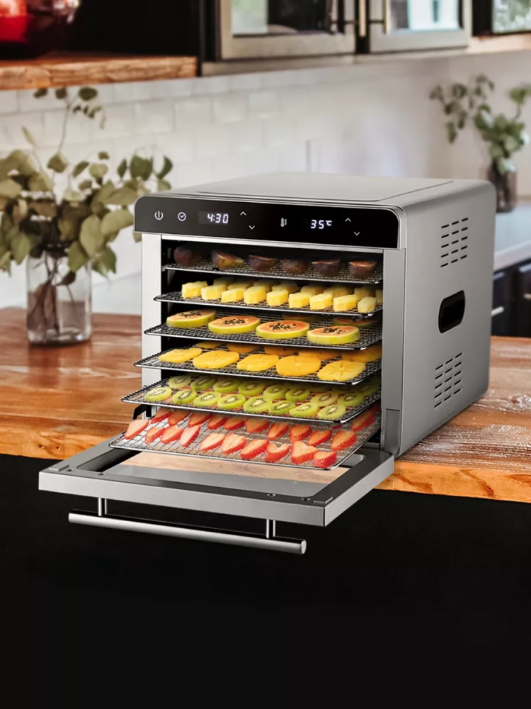 Эта электросушилка идеально подходит как дегидратор для фруктов и пастилы или как дегидратор для продуктов вообще. Она является отличной электросушилкой не только для овощей и фруктов, но также может использоваться как универсальная электросушилка дигидратор благодаря своей многофункциональности.