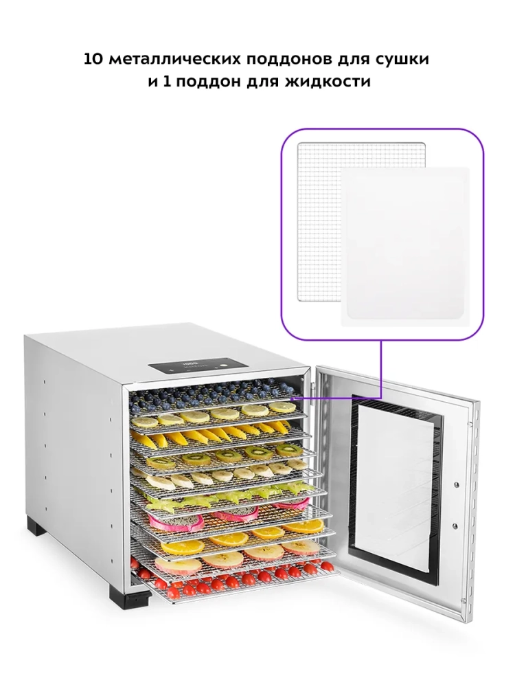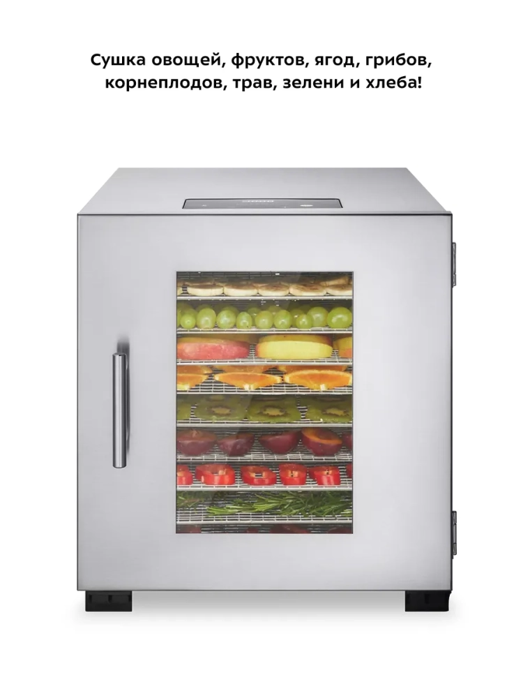 Эта электросушилка идеально подходит как дегидратор для фруктов и пастилы благодаря своей функциональности и простоте использования. Она станет незаменимым помощником на кухне любого любителя здорового питания или заготовок на зиму.