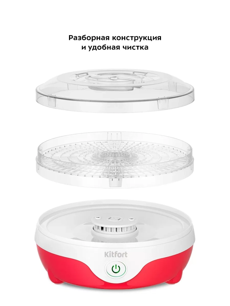 Электрическая сушилка Kitfort КТ-1988 предназначена для сушки овощей, фруктов, ягод, грибов, корнеплодов, трав и зелени, а также хлеба.