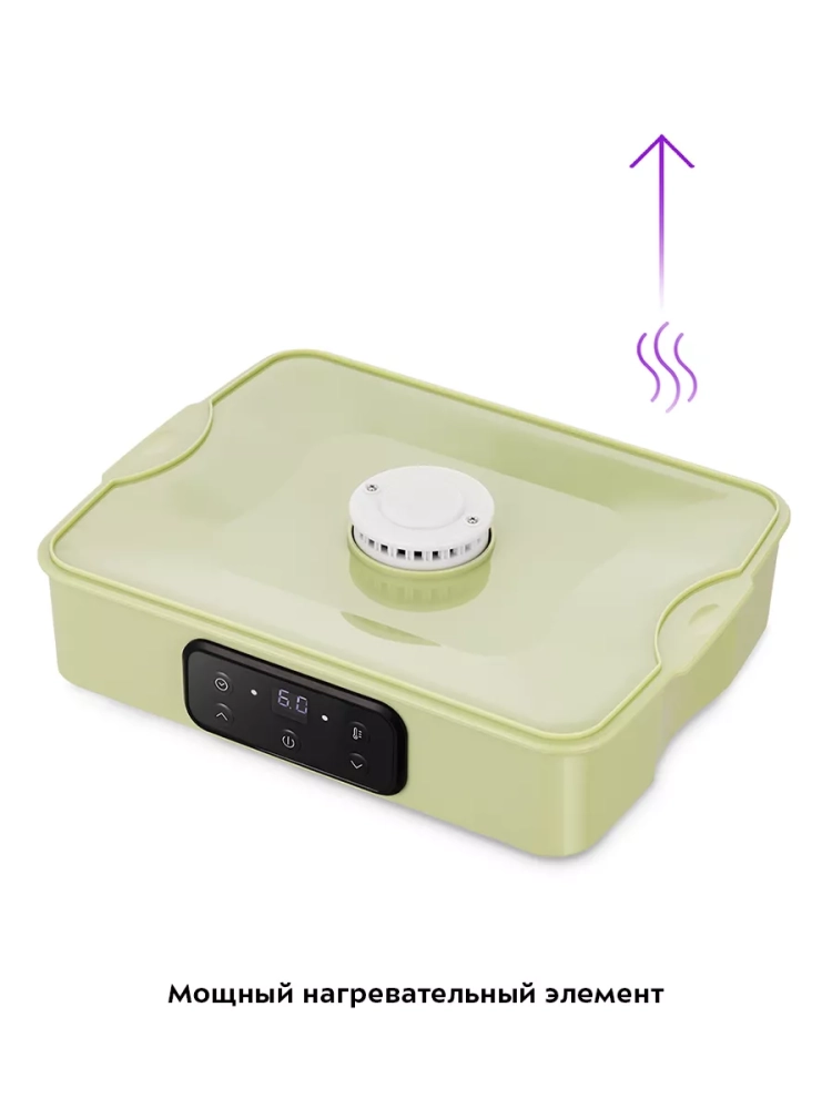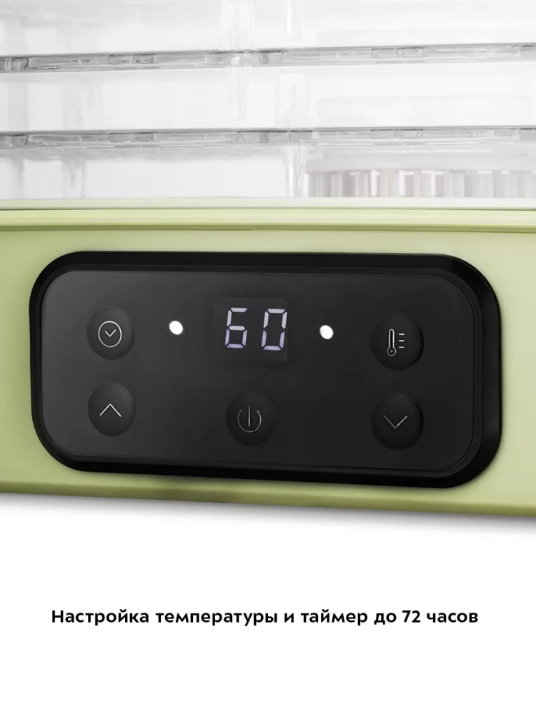 При помощи кнопок на панели управления вы можете установить температуру в диапазоне 35–70 *С с шагом 5 градусов и время в диапазоне от 1 часа до 72 часов с шагом 1 час.
