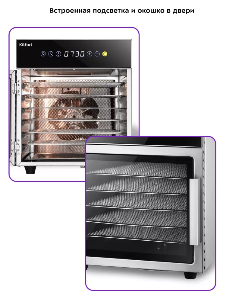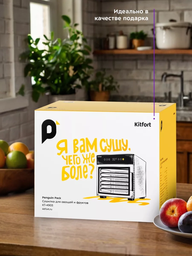 Электрическая сушилка Kitfort КТ-4903 предназначена для сушки овощей, фруктов, ягод, грибов, корнеплодов, трав и зелени, а также мяса и рыбы, хлеба.