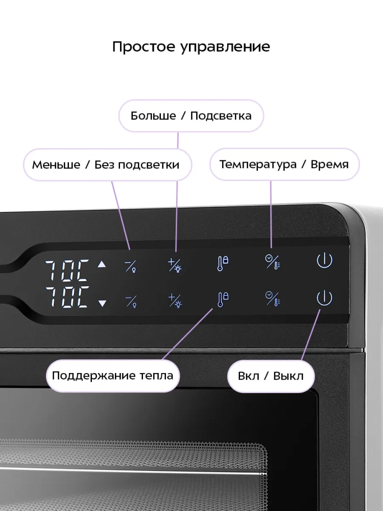 В устройстве есть режим холодного воздуха, при выборе которого нагрев не включается. Данный режим используется для доведения продуктов до готовности без пересушивания. Также в данной модели можно включить поддержание тепла в течение 24 часов.