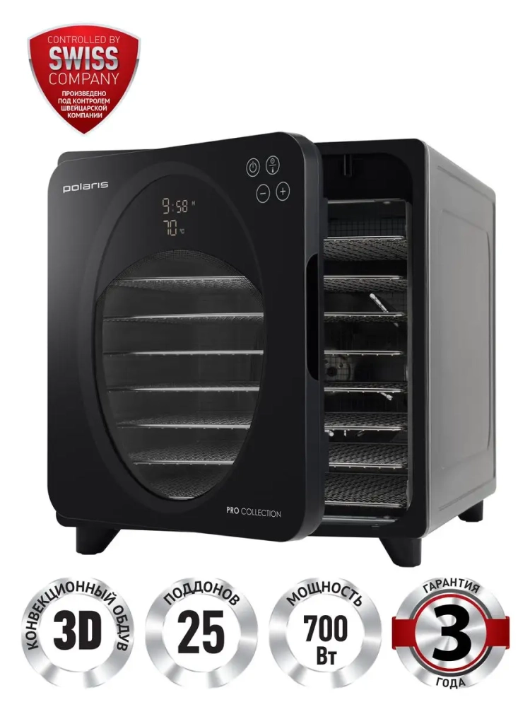 Эта электросушилка оснащена уникальной технологией конвекционного 3D обдува, что делает её на 50 % более эффективной по сравнению с предыдущей моделью Polaris PFD 0105AD. Прочный корпус с двойными стальными стенками обеспечивает долговечность и надежность устройства.