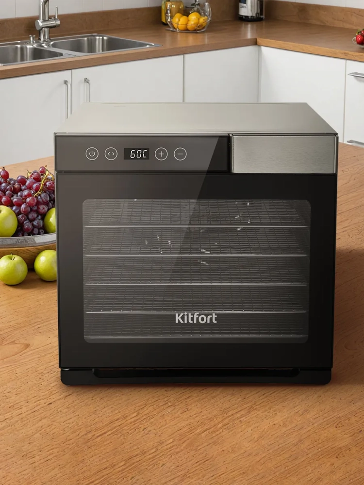 Электрическая сушилка Kitfort KT-4941 предназначена для сушки овощей, фруктов, ягод, грибов, корнеплодов, трав и зелени, а также мяса и рыбы, хлеба.