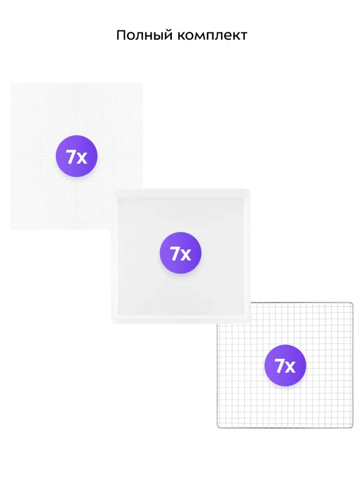 В комплекте к устройству идут 7 металлических поддонов, 7 сеток для мелких продуктов и 7 пластиковых сплошных поддонов.