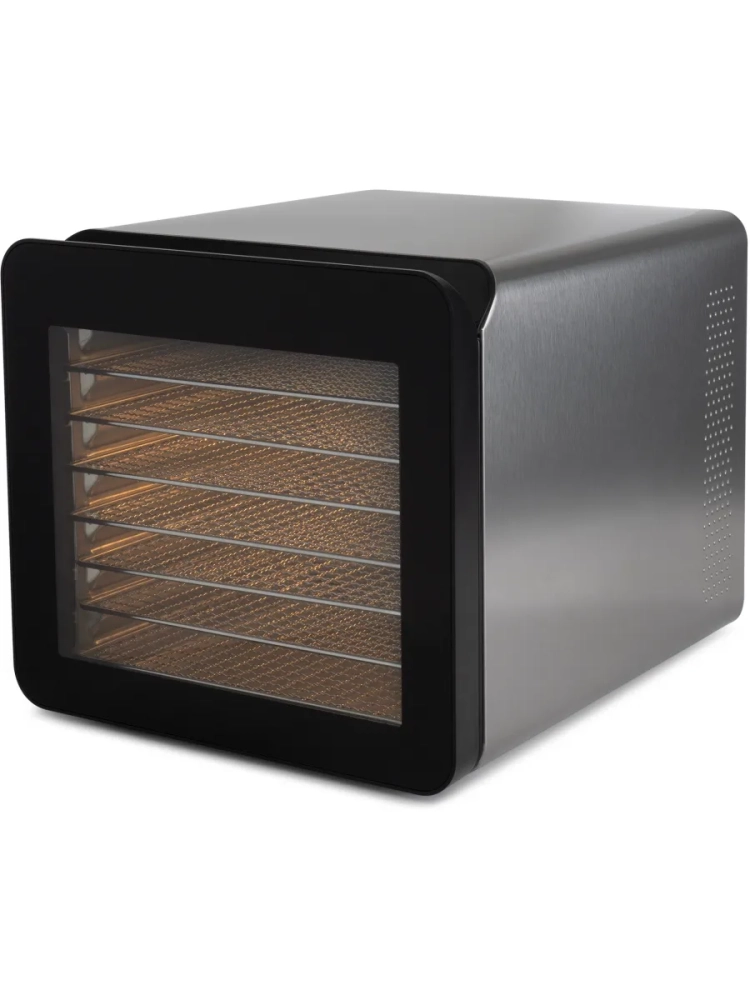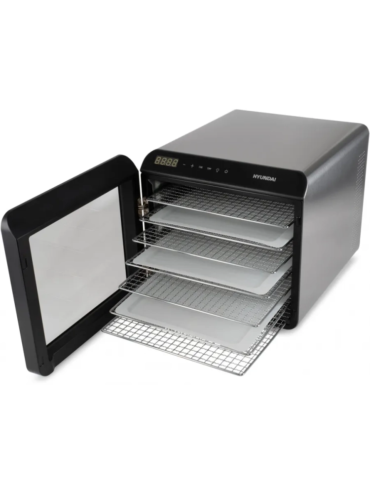 Управление осуществляется с помощью интуитивно понятной сенсорной панели, а встроенный таймер позволяет контролировать процесс сушки с точностью до минуты. Широкая открывающаяся дверца обеспечивает удобный доступ к поддонам, а внутренняя лампа подсветки позволяет следить за процессом сушки без необходимости открывать камеру и нарушать температурный режим. Металлический корпус гарантирует долговечность и надежность устройства, а стильное сочетание серебристого и черного цветов делает его гармоничным дополнением любого интерьера.