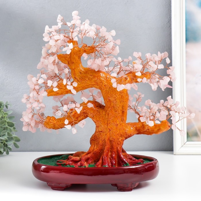 Сувенир бонсай "Денежное дерево с розовыми камушками" 450 камней 32х17х27 см