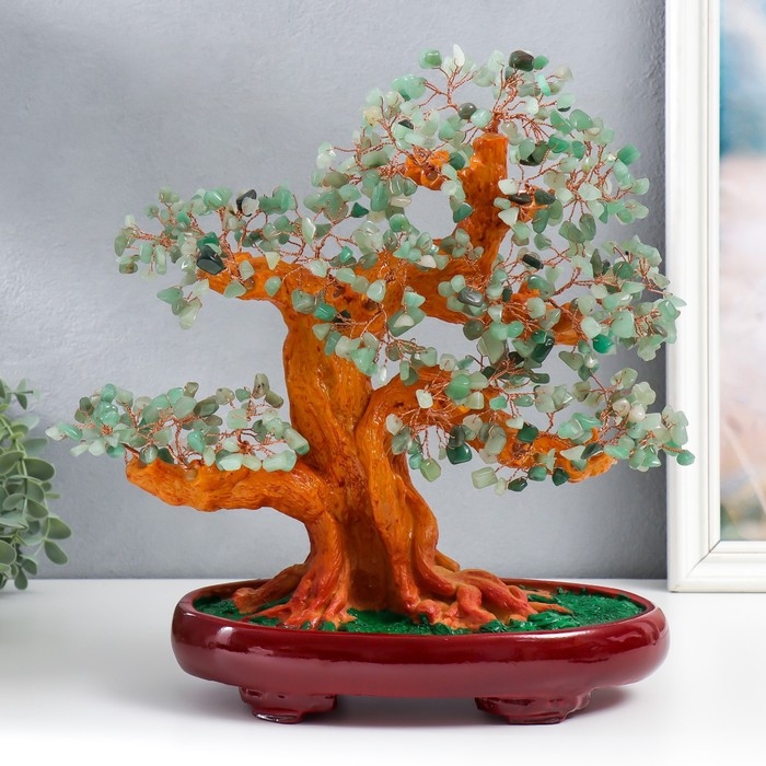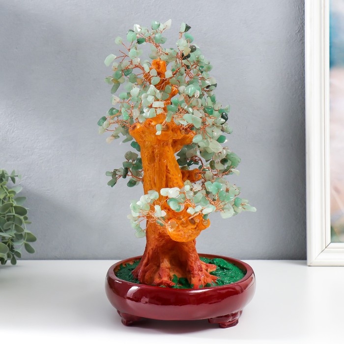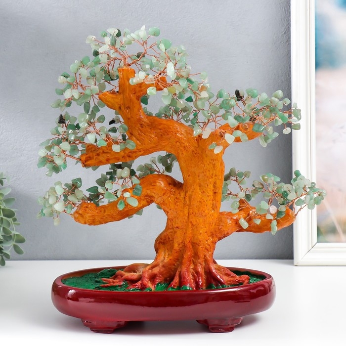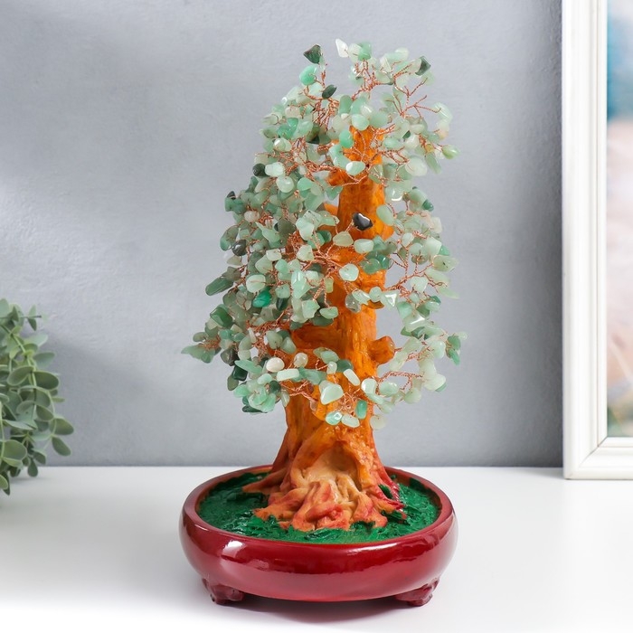 Сувенир бонсай "Денежное дерево с зелёными камушками" 450 камней 32х17х27 см