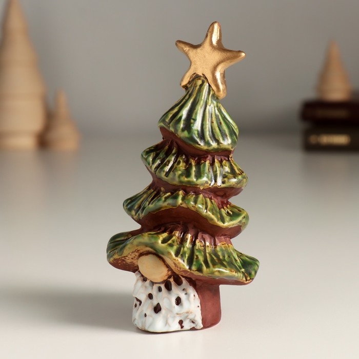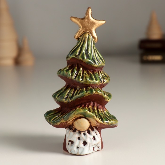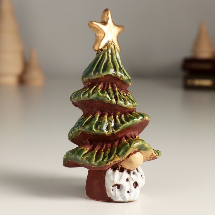 Сувенир керамика "Дед мороз в колпаке-ёлочке со звездой" 5,6х5,9х11,1 см