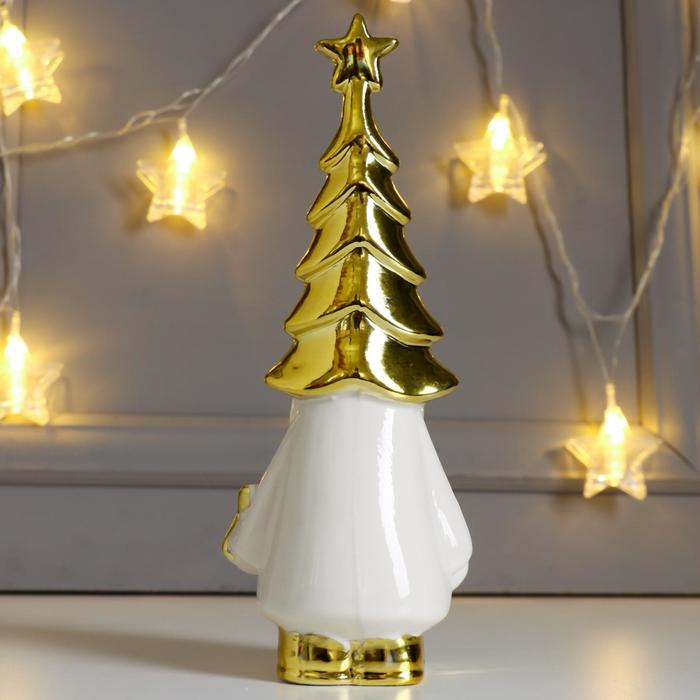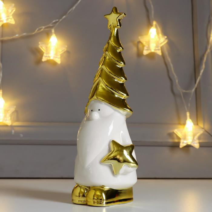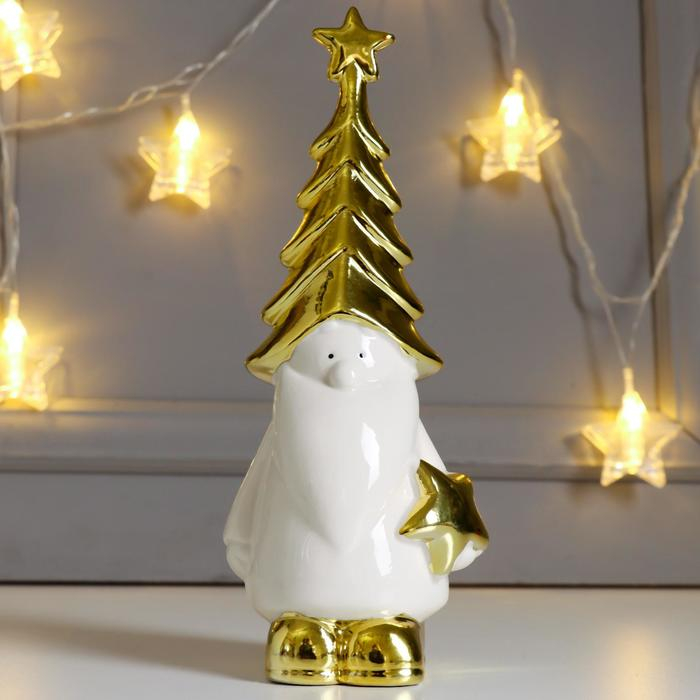 Сувенир керамика "Дедушка Мороз в колпаке-ёлочке, со звёздочкой" золото 23,8х7,3х9,1 см