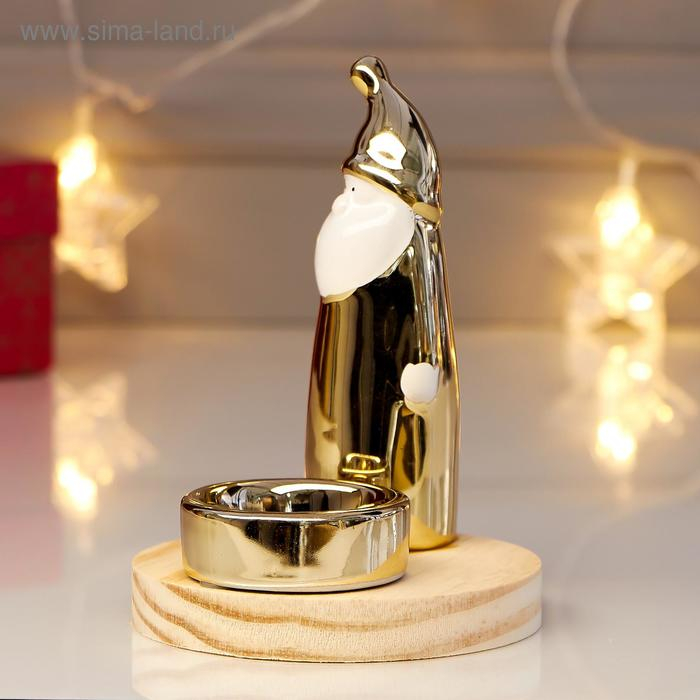 Сувенир керамика, дерево подсвечник "Дед Мороз" золото 13,5х10х10 см