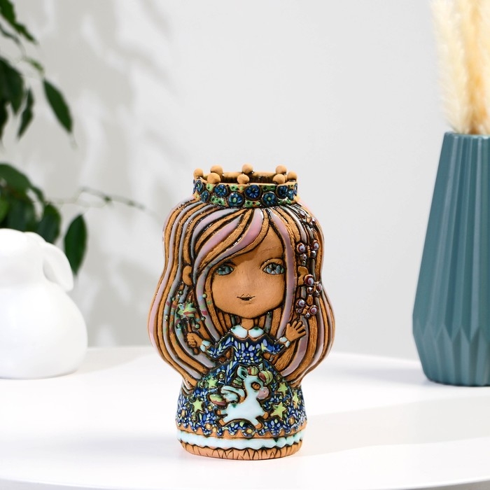 Сувенир керамика "Девочка-фея" с единорогом тёмная (Ваза), h=22 см V=1л
