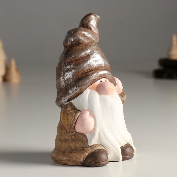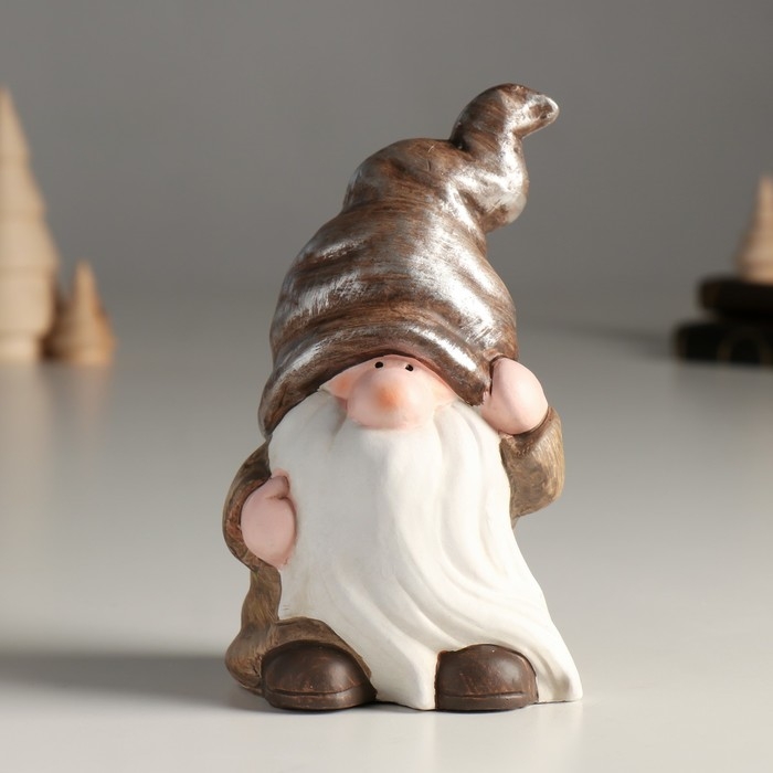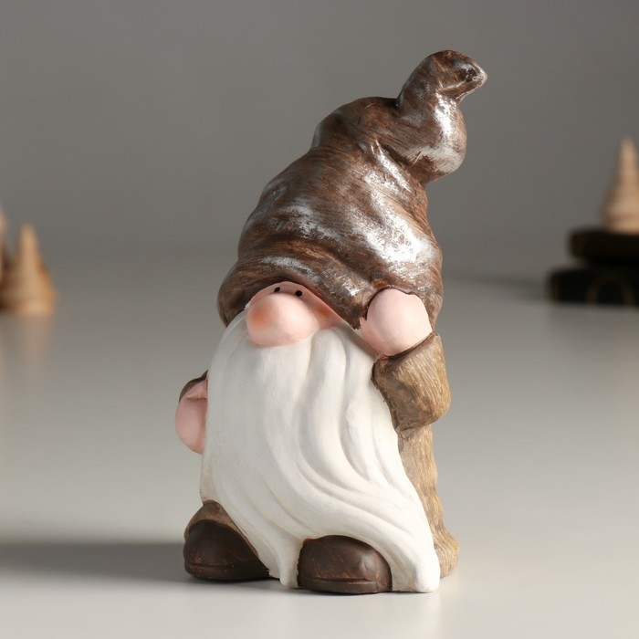 Сувенир керамика "Гномик задумался" беж и корица 9,7х8х16,2 см