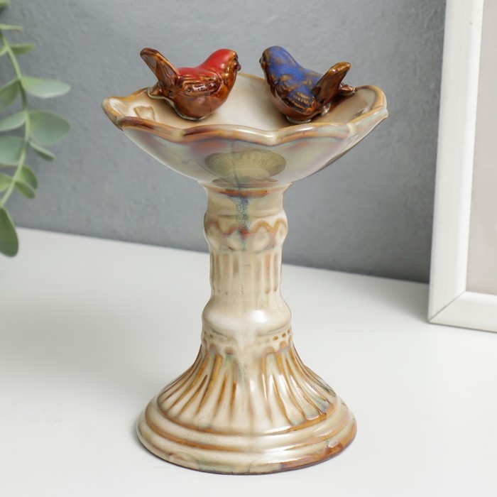 Сувенир керамика подставка "Птицы на колонне с чашей" 15х10,5х10 см
