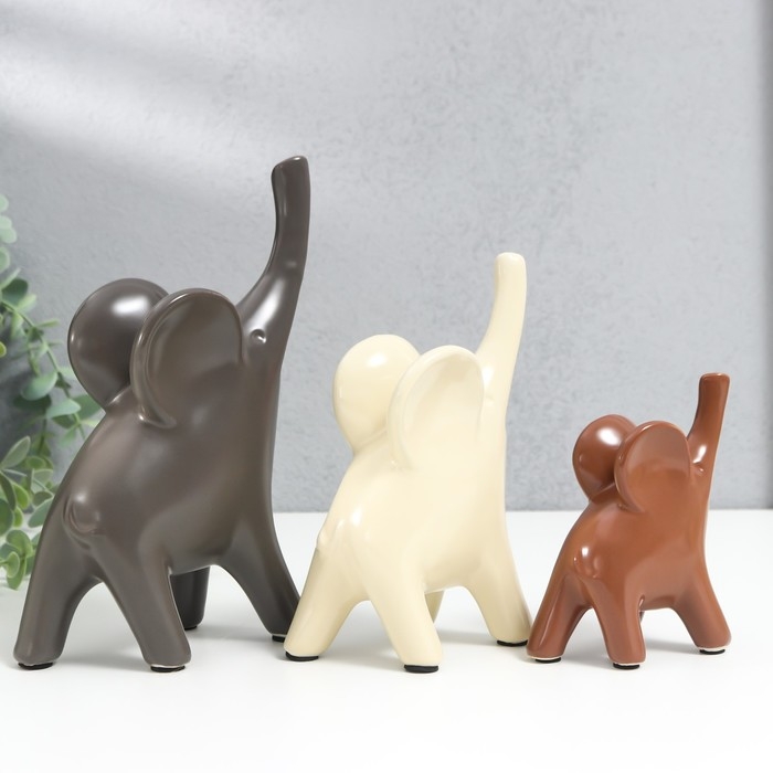Сувенир керамика "Слоники в кофейных тонах" набор 3 шт 9х5х11; 10х6х15,5; 14,5х7х19,5см