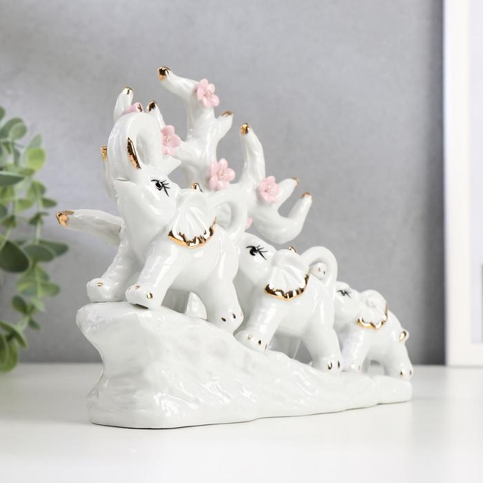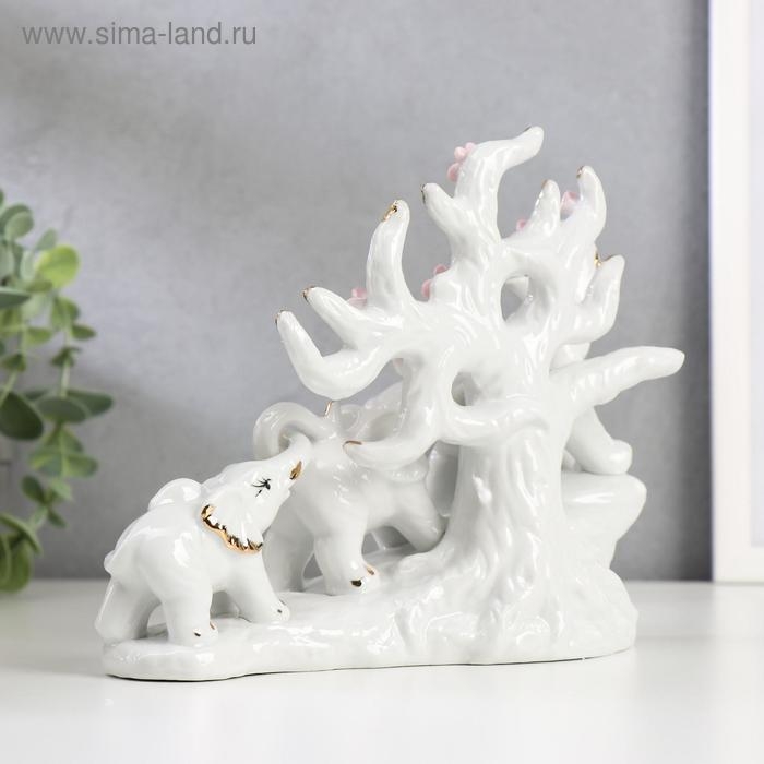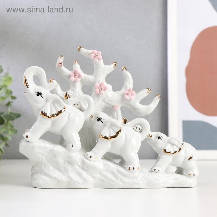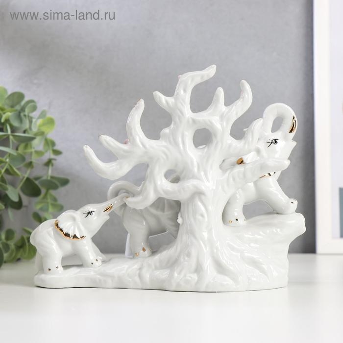 Сувенир керамика "Три слона под деревом" белые 15,5х20х7,5 см
