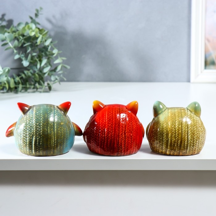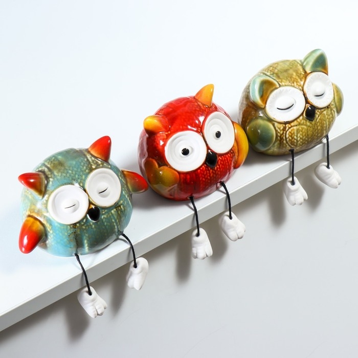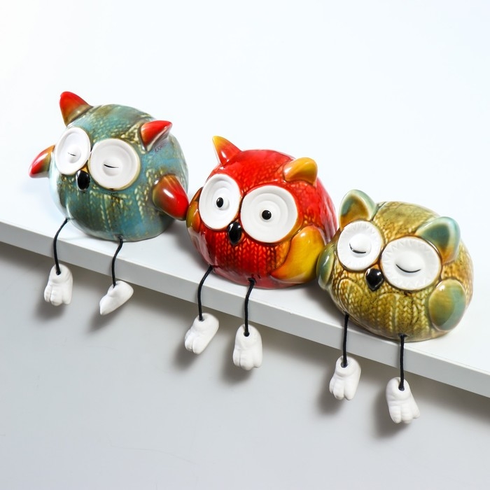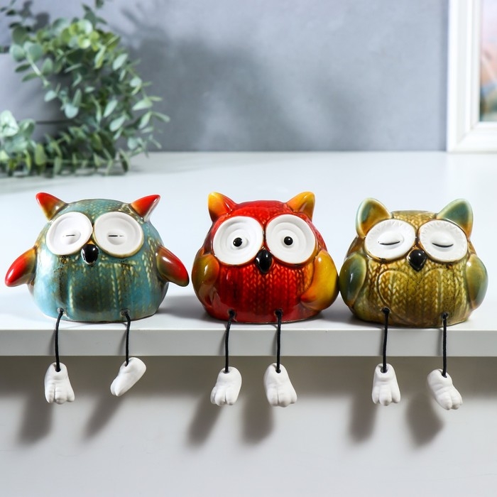 Сувенир керамика "Вязаные совята с длинными ножками" набор 3 шт 8х7,5х9,5 7,5х8х12 см