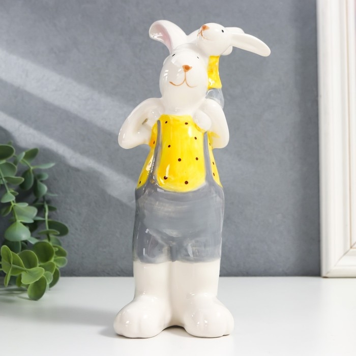 Сувенир керамика "Зайка на плечах у папы" жёлтый, 10х9,5х21 см