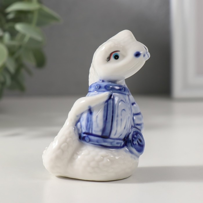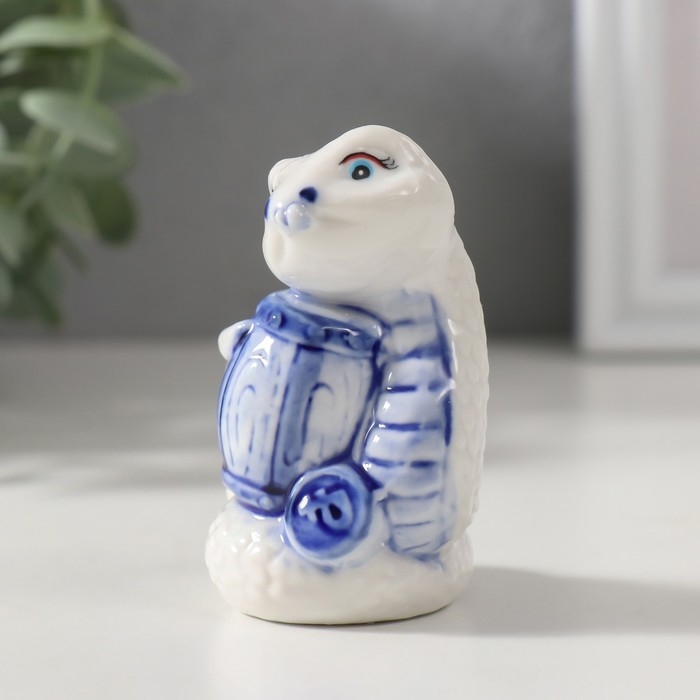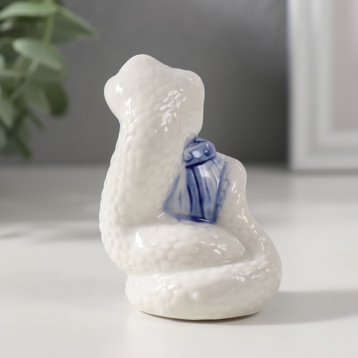 Сувенир керамика "Змейка с сокровищами" бело-синяя набор 3 шт 4,5х4,8х7 см