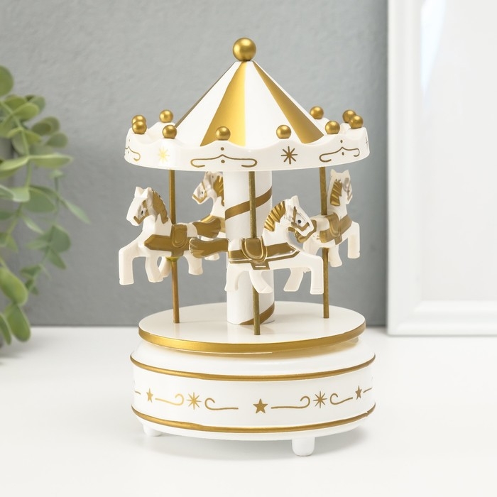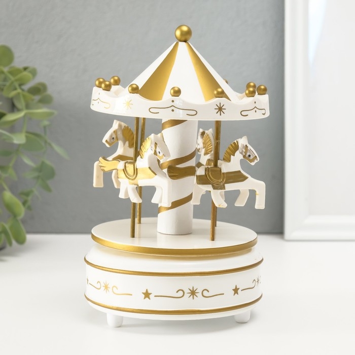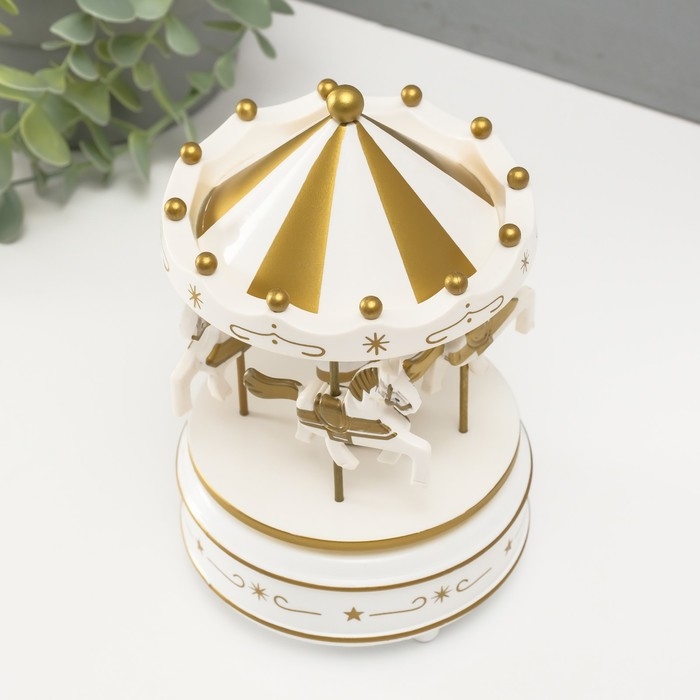 Сувенир пластик музыкальный механический "Карусель - лошадки" белый 10,5х10,5х17,5 см
