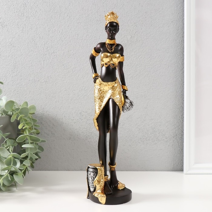 Сувенир полистоун "Африканка в золотом с кувшином в руке" 7х7х29 см