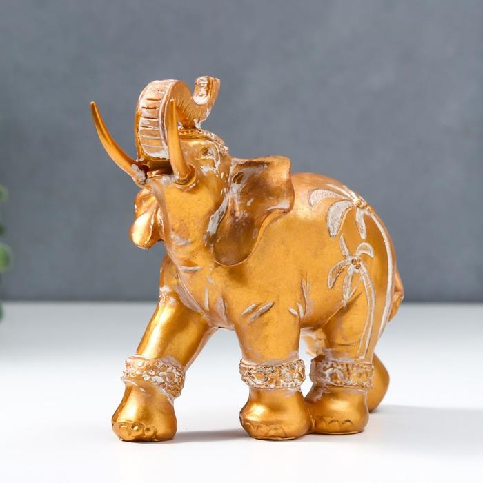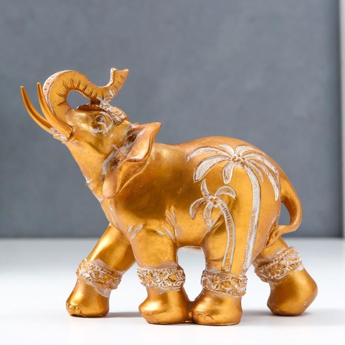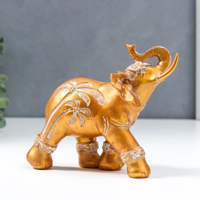 Сувенир полистоун "Африканский слон с пальмами" состаренное золото 14х7х16,5 см