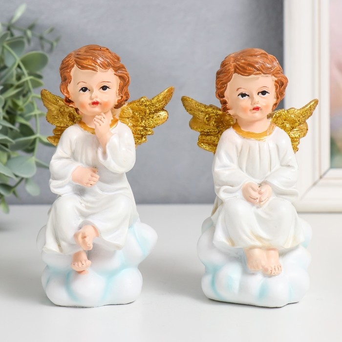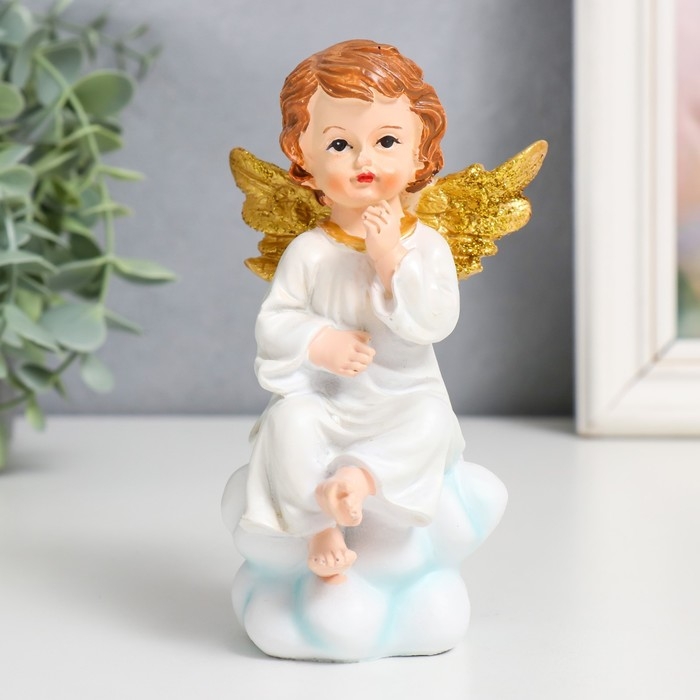 Сувенир полистоун "Ангел в тоге на облаке, золотые крылья" МИКС 8х7х13,5 см