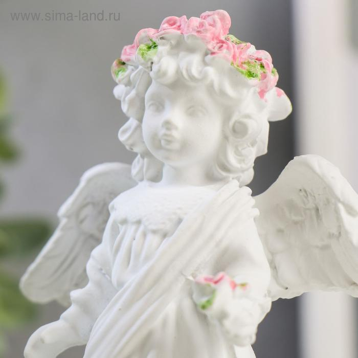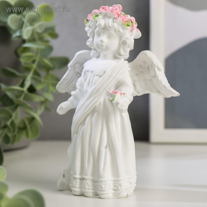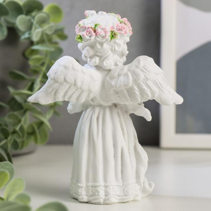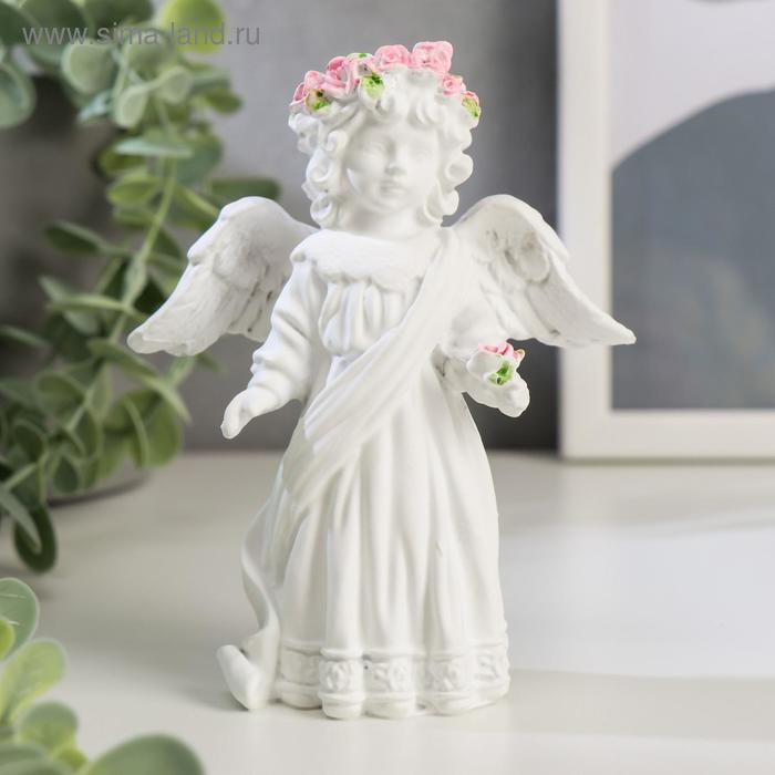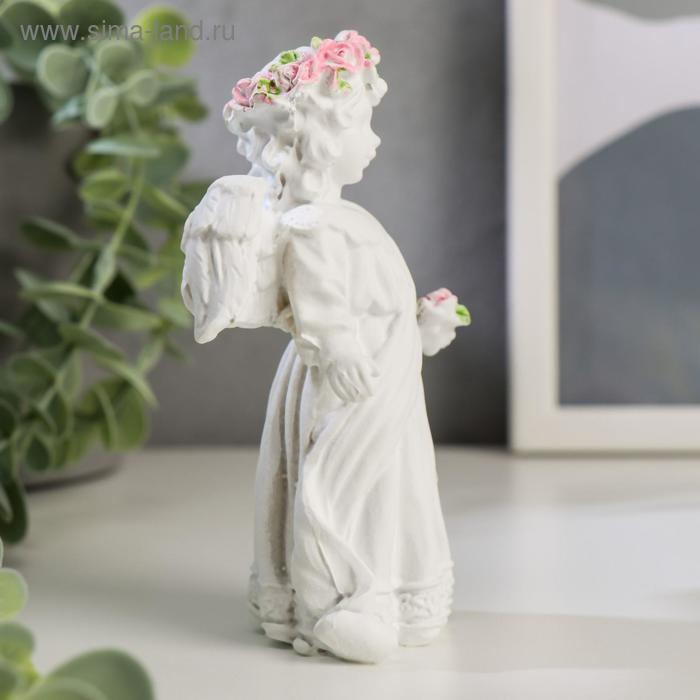 Сувенир полистоун "Белоснежный ангел в кружевном наряде, с розой" 12х10,5х4,3 см