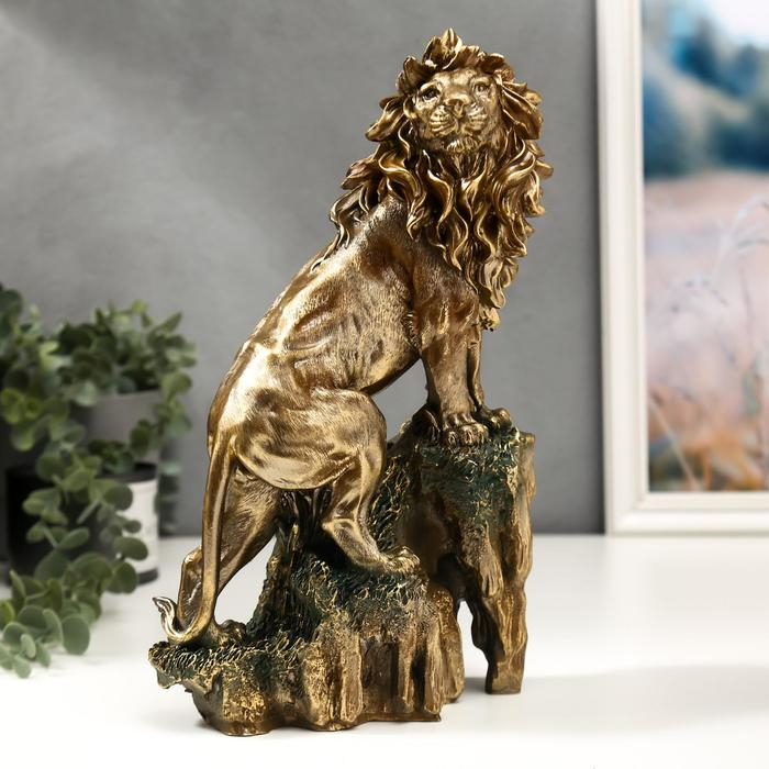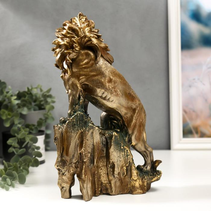 Сувенир полистоун "Бронзовый лев на вершине скалы" 31х19х8 см