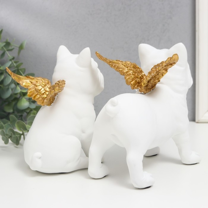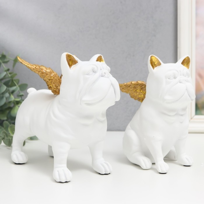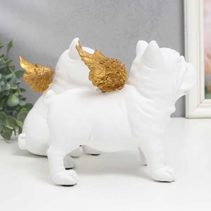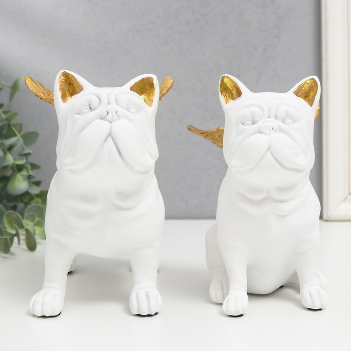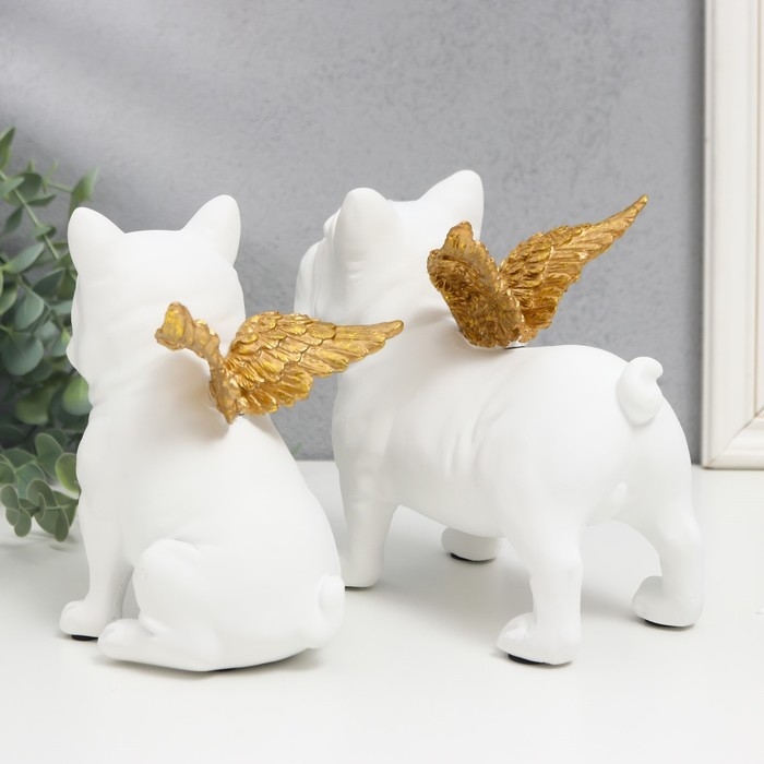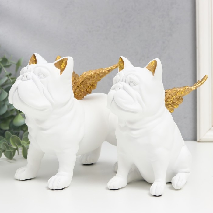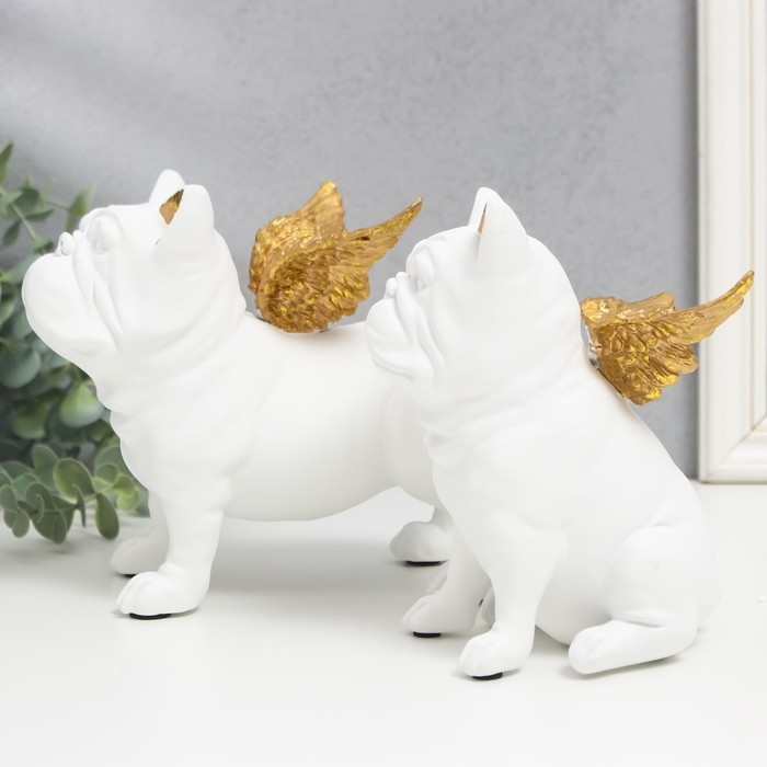 Сувенир полистоун "Бульдоги с крыльями" белый набор 2 шт 16,5х10,5х13,5 16,5х11,5х18,5 см