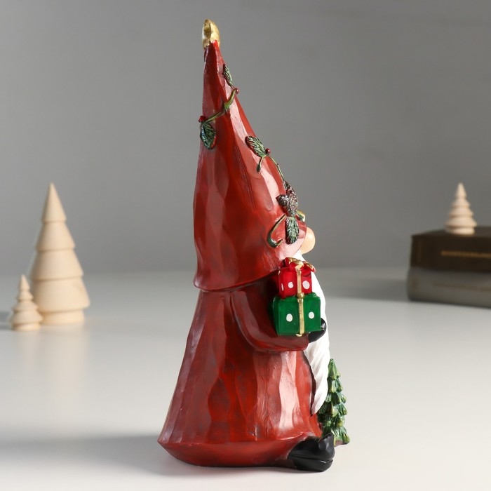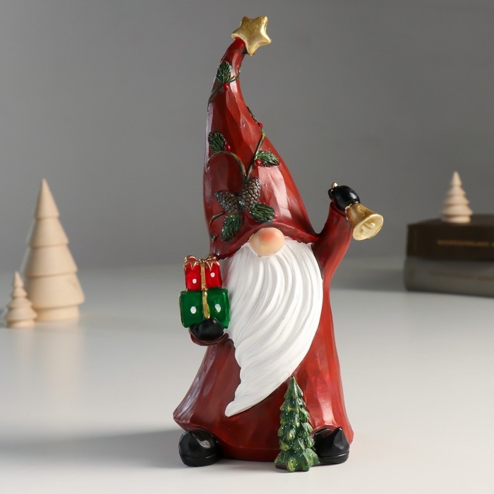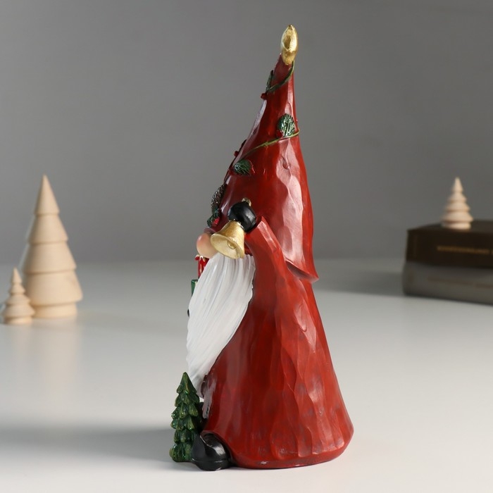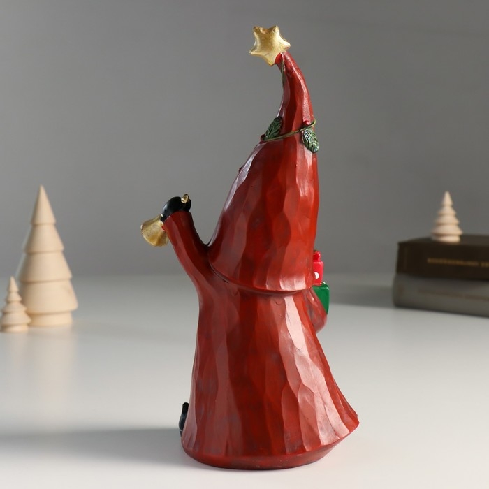 Сувенир полистоун "Дед Мороз в красном наряде, с подарками и колокольчиком" 10,5х9х22,5 см
