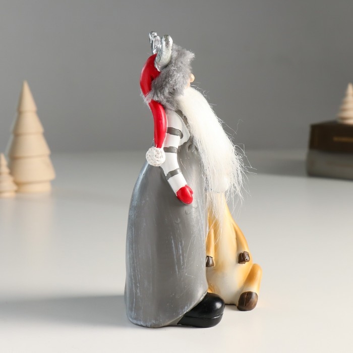 Сувенир полистоун "Дед Мороз в шапке с рожками и помощником оленем" 8,5х8х17 см