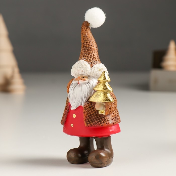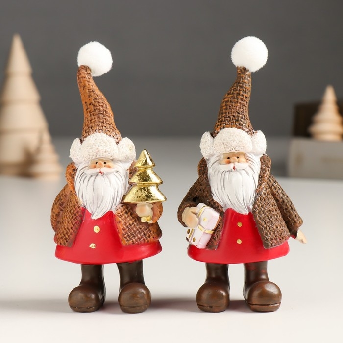 Сувенир полистоун "Дед Мороз в вафельной шубе, колпаке, с подарком/ёлкой" МИКС 5х3,5х11,5 см