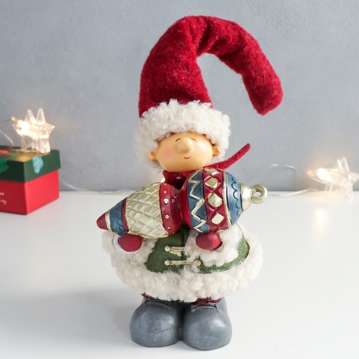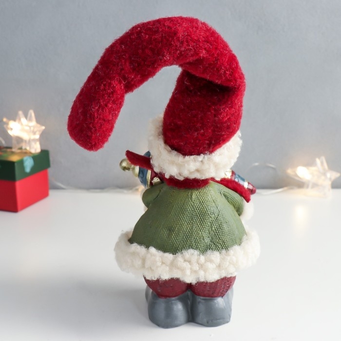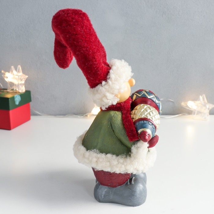 Сувенир полистоун "Гномик в красном колпаке с ёлочной игрушкой" 10,5х12,5х27,5 см
