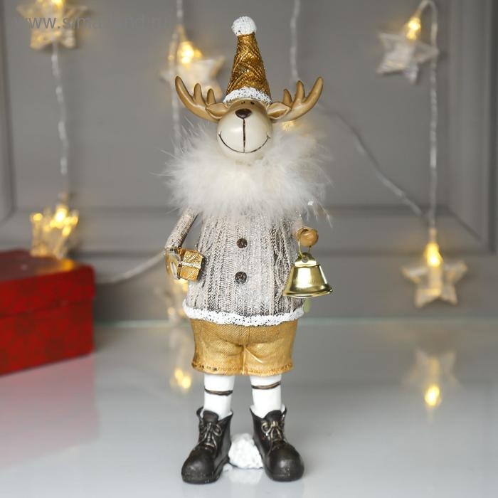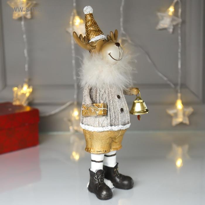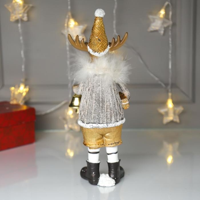 Сувенир полистоун "Лосик в серебристом свитере с колокольчиком" 27х6,5х9 см