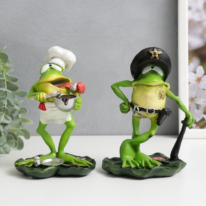 Сувенир полистоун "Лягуха - повар/полицейский" МИКС 14,5х9,5х8 см