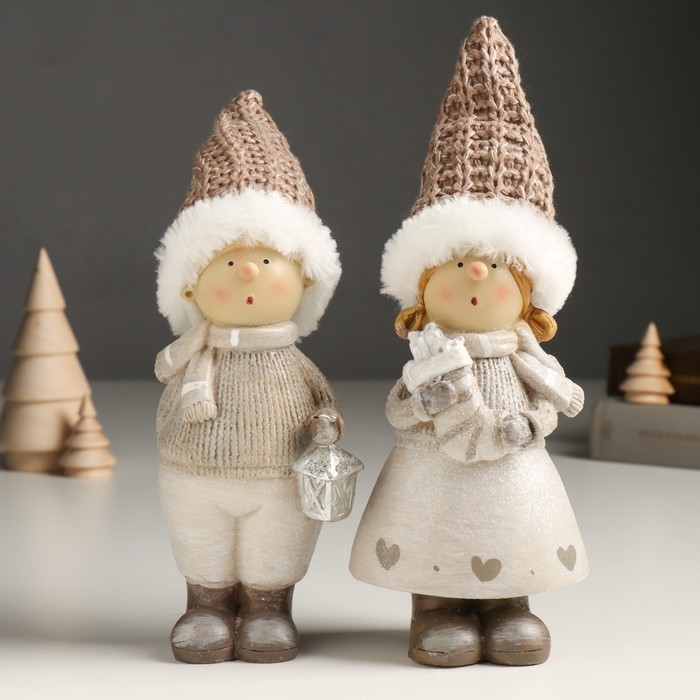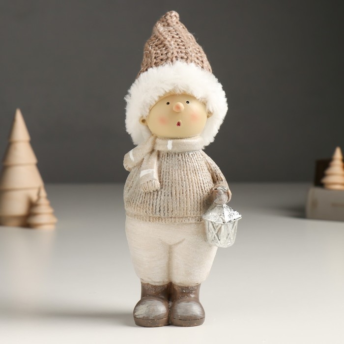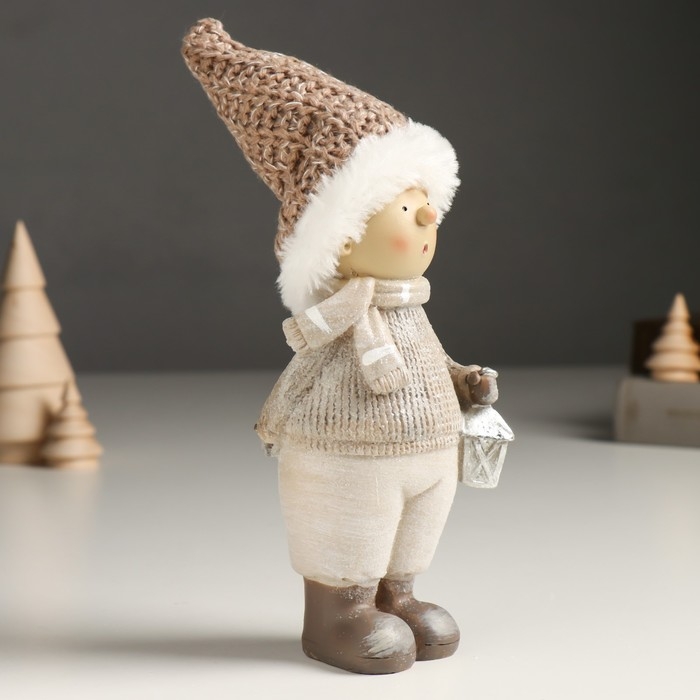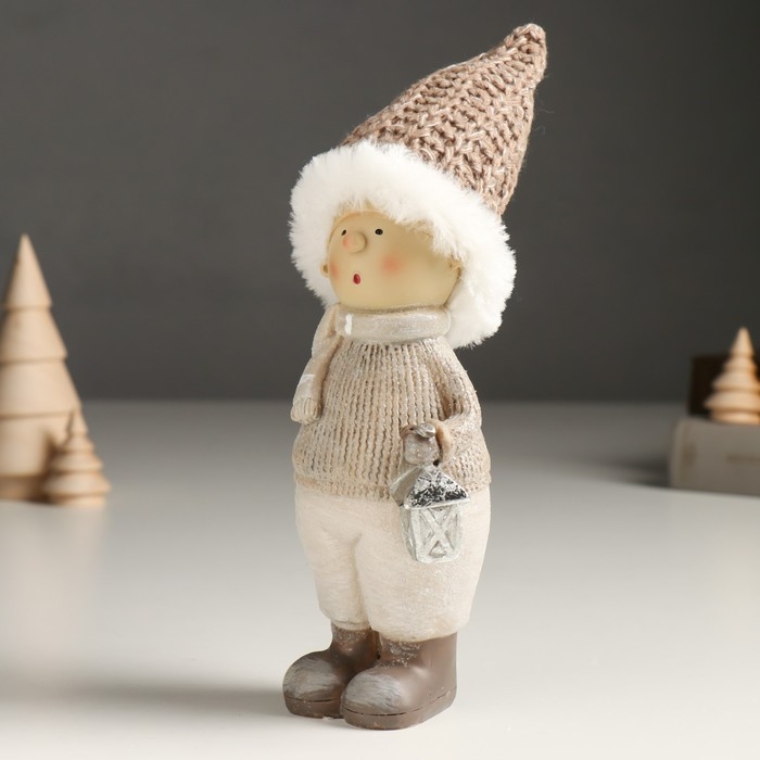 Сувенир полистоун "Малышка/Малыш в вязаном наряде, с носком/фонариком" МИКС 5х7,5х22 см