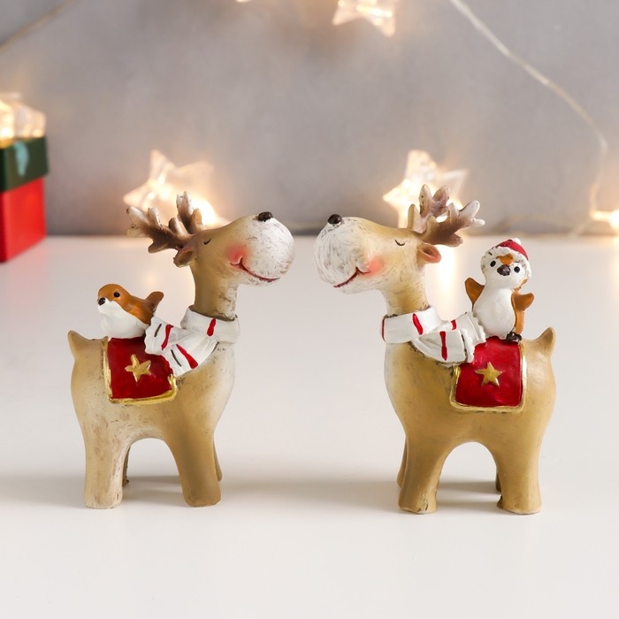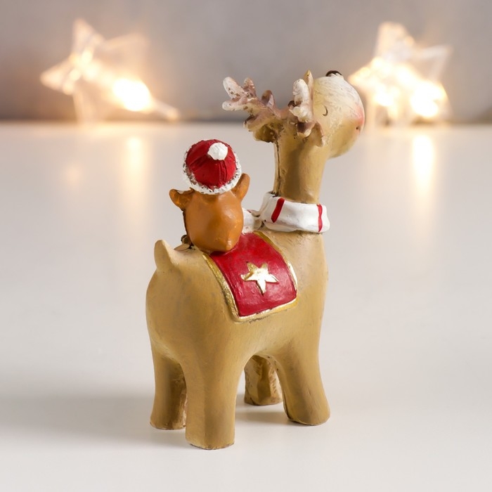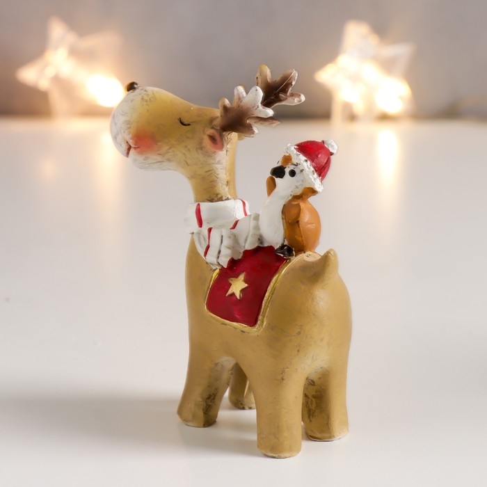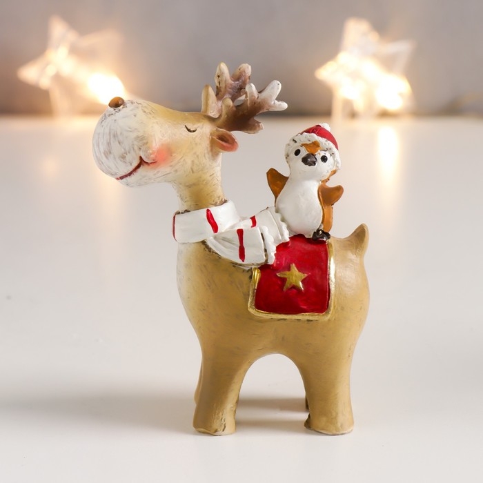 Сувенир полистоун "Новогодний олешка с птенчиком на спине" МИКС 9х6,5х3 см