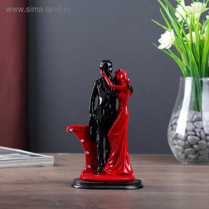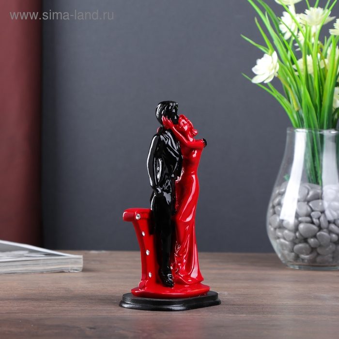 Сувенир полистоун "Пара влюблённых у колонны со стразами" красно-чёрный 17х9х5,5 см