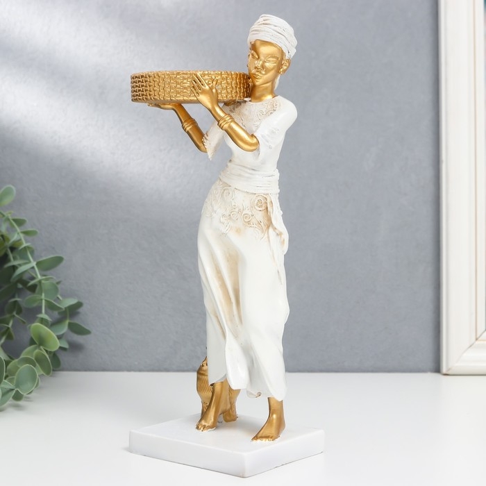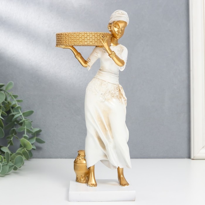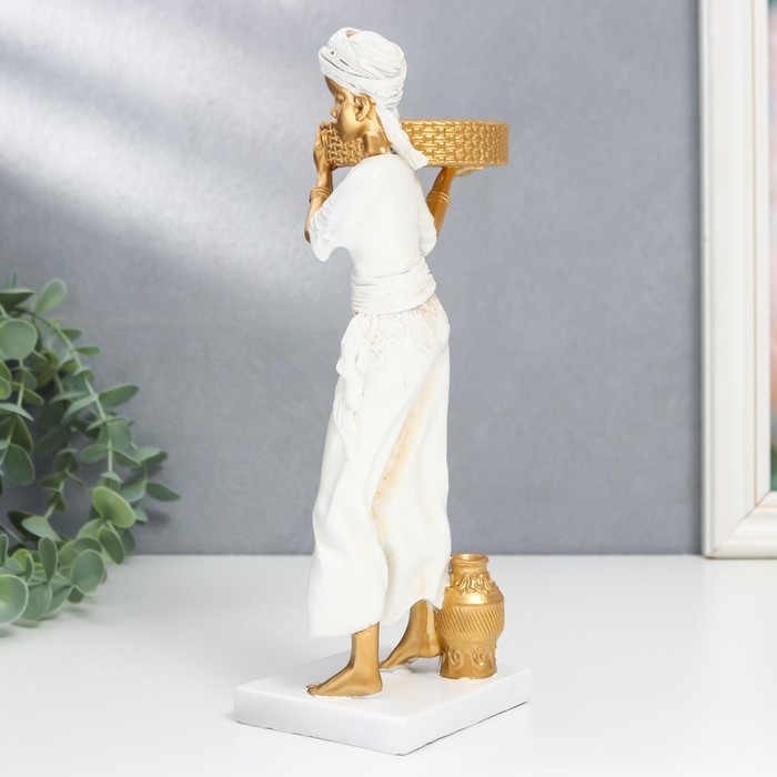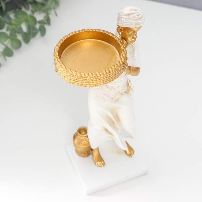 Сувенир полистоун подсвечник "Африканка" d- 5,8 см, белый с золотом 7,5х8,7х25,2 см