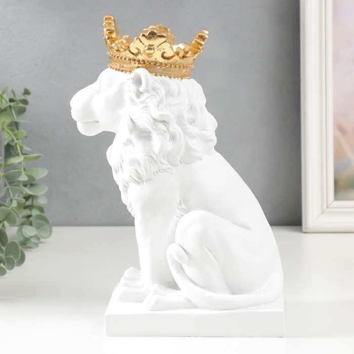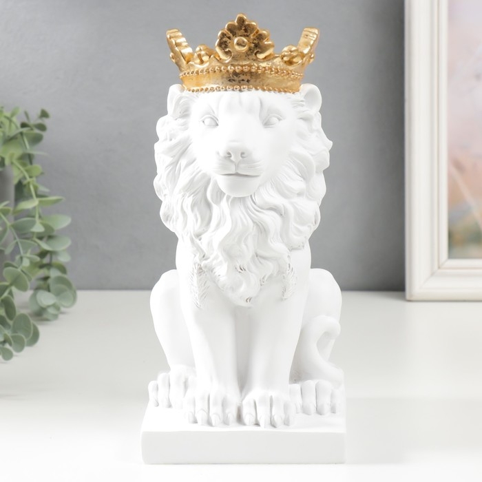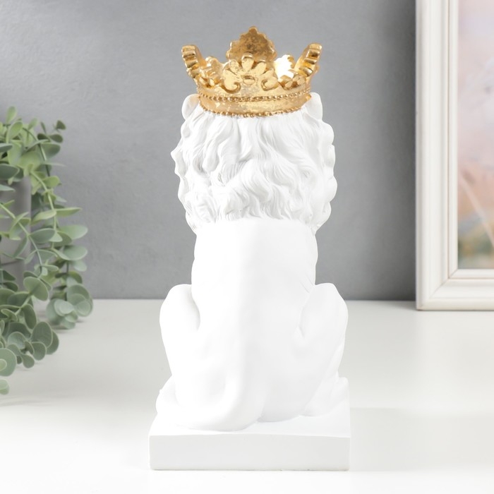 Сувенир полистоун подсвечник "Белый лев в золотой короне" 24,5х14х11,5 см
